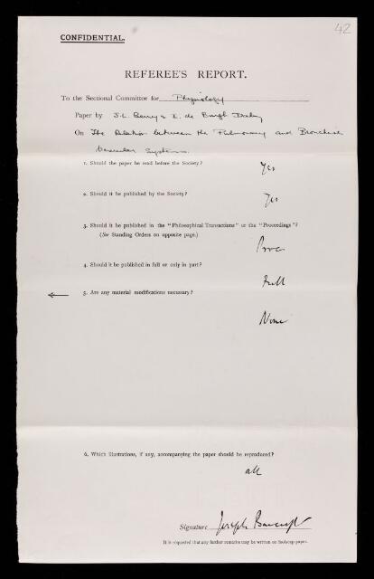 Joseph Barcroft, Referee's report by Joseph Barcroft, on a paper 'The relation between the pulmonary and bronchial vascular systems' by J L Berry and Ivan De Burgh Daly, September 1931, RR/44/42, The Royal Society Archives, London, https://makingscience.royalsociety.org/items/rr_44_42/referees-report-by-joseph-barcroft-on-a-paper-the-relation-between-the-pulmonary-and-bronchial-vascular-systems-by-j-l-berry-and-ivan-de-burgh-daly, accessed on 24 January 2026