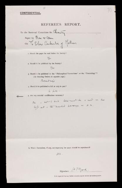 Henry Thomas Tizard, Referee's report by Henry Thomas Tizard, on a paper 'The slow combustion of methane' by William Arthur Bone and R E Allum, October 1931, RR/44/50, The Royal Society Archives, London, https://makingscience.royalsociety.org/items/rr_44_50/referees-report-by-henry-thomas-tizard-on-a-paper-the-slow-combustion-of-methane-by-william-arthur-bone-and-r-e-allum, accessed on 13 March 2026