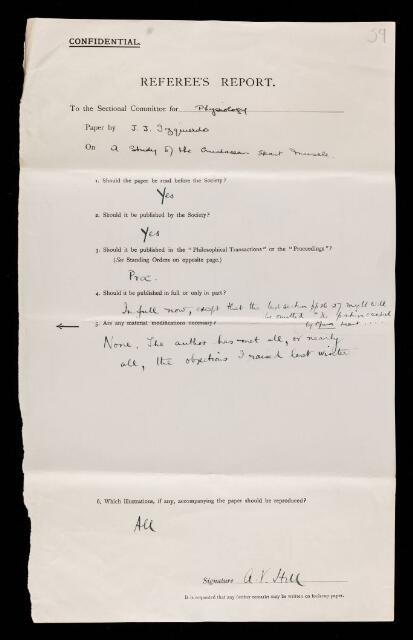 Archibald Vivian Hill, Referee's report by Archibald Vivian Hill, on a paper 'A study of the crustacean heart muscle' by J J Izquierdo, August 1931, RR/44/59, The Royal Society Archives, London, https://makingscience.royalsociety.org/items/rr_44_59/referees-report-by-archibald-vivian-hill-on-a-paper-a-study-of-the-crustacean-heart-muscle-by-j-j-izquierdo, accessed on 14 November 2025