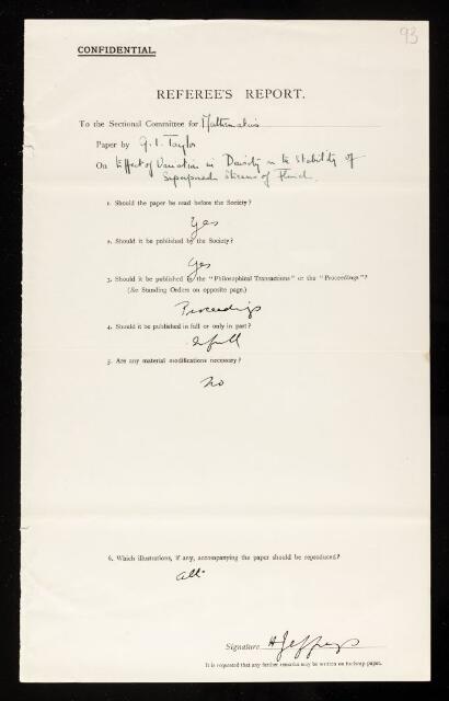 Harold Jeffreys, Referee's report by Harold Jeffreys, on a paper 'The transport of vorticity and heat through fluids in turbulent motion' by Geoffrey Ingram Taylor, April 1931, RR/44/93, The Royal Society Archives, London, https://makingscience.royalsociety.org/items/rr_44_93/referees-report-by-harold-jeffreys-on-a-paper-the-transport-of-vorticity-and-heat-through-fluids-in-turbulent-motion-by-geoffrey-ingram-taylor, accessed on 14 March 2026