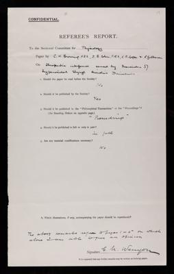 Referees' reports on scientific papers submitted to the Royal Society for publication