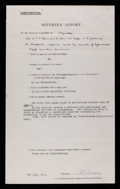 Gilbert Thomas Morgan, Referee's report by Gilbert Thomas Morgan, on a paper 'Therapeutic interference caused by isomerides of trypanocidal styryl quinoline derivatives' by Carl Hamilton Browning, Julius Berend Cohen, K E Cooper and R Gulbransen, 07 July 1931, RR/45/18, The Royal Society Archives, London, https://makingscience.royalsociety.org/items/rr_45_18/referees-report-by-gilbert-thomas-morgan-on-a-paper-therapeutic-interference-caused-by-isomerides-of-trypanocidal-styryl-quinoline-derivatives-by-carl-hamilton-browning-julius-berend-cohen-k-e-cooper-and-r-gulbransen, accessed on 10 November 2025