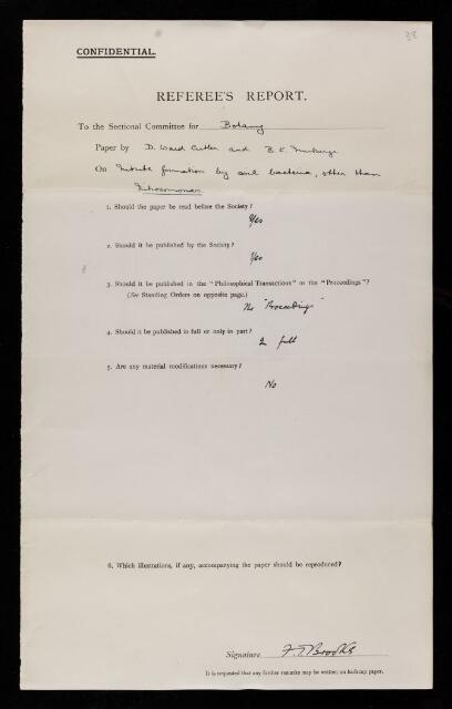 Referee's report by Frederick Tom Brooks, on a paper 'Nitrite formation by soil bacteria, other than Nitrosomonas' by D Ward Cutler and B K Mukerji