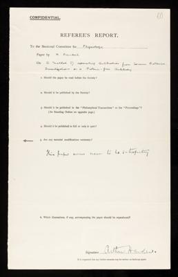 Referees' reports on scientific papers submitted to the Royal Society for publication