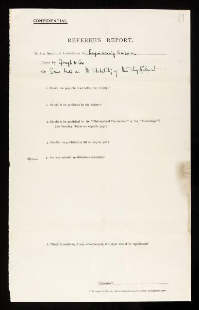 Geoffrey Ingram Taylor, Second referee's report by Geoffrey Ingram Taylor, on a paper 'Some tests on the stability of thin strip material under shearing forces in the plane of the strip' by Herbert John Gough and H L Cox, 31 March 1932, RR/47/69, The Royal Society Archives, London, https://makingscience.royalsociety.org/items/rr_47_69/second-referees-report-by-geoffrey-ingram-taylor-on-a-paper-some-tests-on-the-stability-of-thin-strip-material-under-shearing-forces-in-the-plane-of-the-strip-by-herbert-john-gough-and-h-l-cox, accessed on 09 December 2025