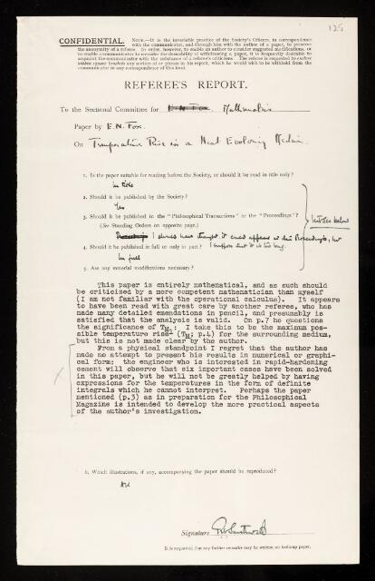 Richard Vynne Southwell, Referee's report by Richard Vynne Southwell, on a paper 'Temperature rise in a heat-evolving medium' by E N Fox, August 1933, RR/49/125, The Royal Society Archives, London, https://makingscience.royalsociety.org/items/rr_49_125/referees-report-by-richard-vynne-southwell-on-a-paper-temperature-rise-in-a-heat-evolving-medium-by-e-n-fox, accessed on 15 November 2025