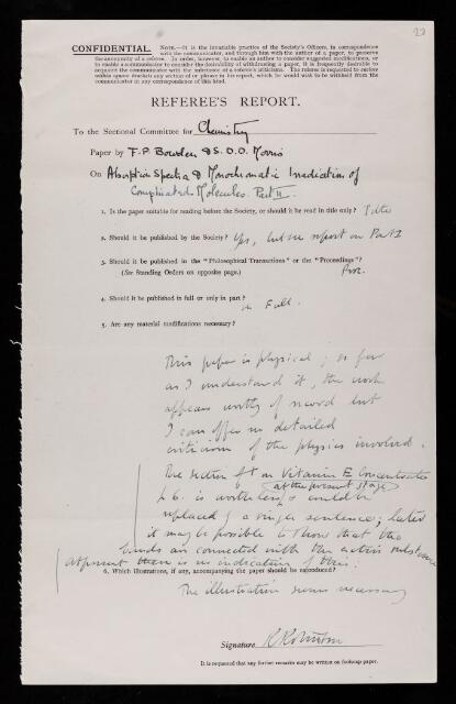 https://makingscience.royalsociety.org/items/rr_49_27/referees-report-by-robert-robinson-on-a-paper-physico-chemical-studies-of-complex-organic-molecules-part-ii-absorption-spectra-at-low-temperatures-by-frank-philip-bowden-and-s-d-d-morris
