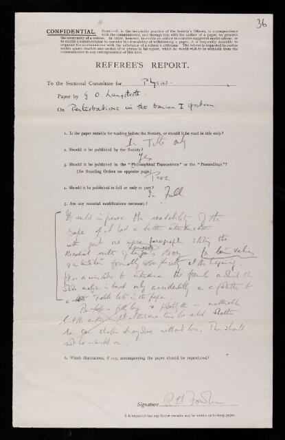 Ralph Howard Fowler, Referee's report by Ralph Howard Fowler, on a paper 'Perturbations in the barium I spectrum' by G O Langstroth, June 1933, RR/50/36, The Royal Society Archives, London, https://makingscience.royalsociety.org/items/rr_50_36/referees-report-by-ralph-howard-fowler-on-a-paper-perturbations-in-the-barium-i-spectrum-by-g-o-langstroth, accessed on 06 February 2026