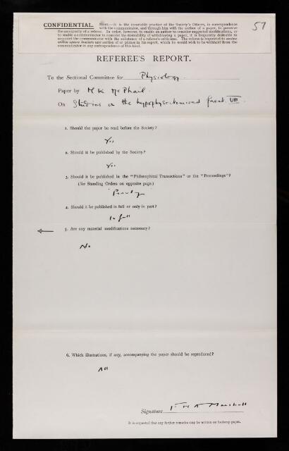 Francis Hugh Adam Marshall, Referee's report by Francis Hugh Adam Marshall, on a paper 'Studies on the hypophysectomized ferret. VIII. -Effect of administration of anterior lobe extract, prolan, and the two combined' by M K McPhail, October 1933, RR/50/57, The Royal Society Archives, London, https://makingscience.royalsociety.org/items/rr_50_57/referees-report-by-francis-hugh-adam-marshall-on-a-paper-studies-on-the-hypophysectomized-ferret-viii-effect-of-administration-of-anterior-lobe-extract-prolan-and-the-two-combined-by-m-k-mcphail, accessed on 13 February 2026