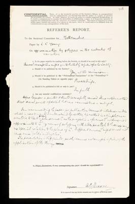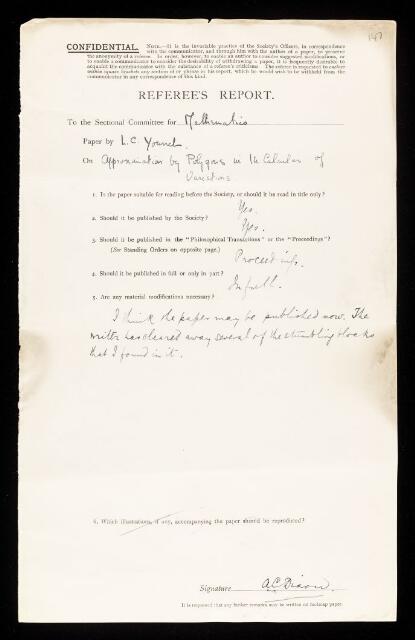 Alfred Cardew Dixon, Second referee's report by Alfred Cardew Dixon, on a paper 'On approximation by polygons in the calculus of variations' by L C Young, May 1933, RR/51/147, The Royal Society Archives, London, https://makingscience.royalsociety.org/items/rr_51_147/second-referees-report-by-alfred-cardew-dixon-on-a-paper-on-approximation-by-polygons-in-the-calculus-of-variations-by-l-c-young, accessed on 13 November 2025