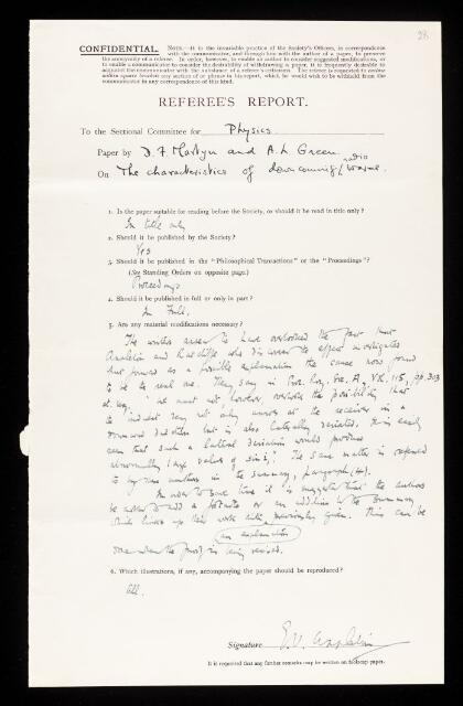 Edward Victor Appleton, Referee's report by Edward Victor Appleton, on a paper 'The characteristics of downcoming radio waves' by David Forbes Martyn and A L Green, October 1934, RR/51/28, The Royal Society Archives, London, https://makingscience.royalsociety.org/items/rr_51_28/referees-report-by-edward-victor-appleton-on-a-paper-the-characteristics-of-downcoming-radio-waves-by-david-forbes-martyn-and-a-l-green, accessed on 15 November 2025