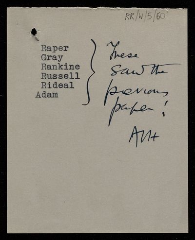 Creator: James Gray, Henry Stanley Raper Reference number: RR/52/143 -