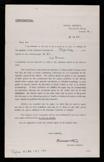 Creator: Archibald Vivian Hill Reference number: RR/55/131