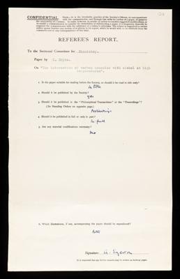 Henry Thomas Tizard, Second referee's report by Henry Thomas Tizard, on a paper 'On the interaction of carbon monoxide with nickel at high temperatures' by G Bryce, May 1936, RR/57/122, The Royal Society Archives, London, https://makingscience.royalsociety.org/items/rr_57_122/second-referees-report-by-henry-thomas-tizard-on-a-paper-on-the-interaction-of-carbon-monoxide-with-nickel-at-high-temperatures-by-g-bryce, accessed on 14 November 2025