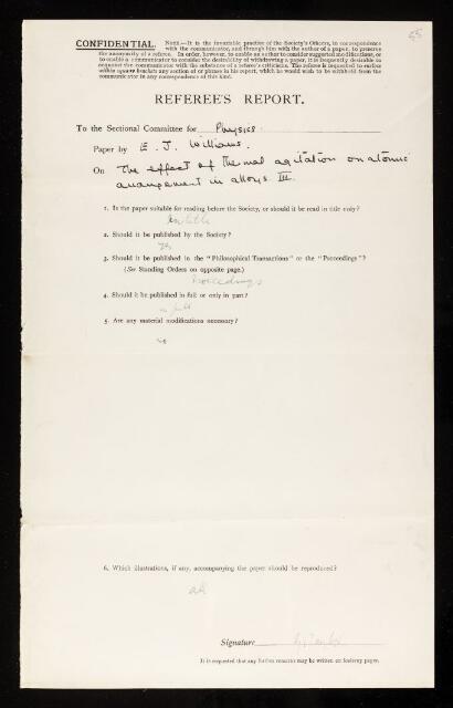 Geoffrey Ingram Taylor, Referee's report by Geoffrey Ingram Taylor, on a paper 'The effect of thermal agitation on atomic arrangement in alloys-III' by Evan James Williams, July 1935, RR/57/55, The Royal Society Archives, London, https://makingscience.royalsociety.org/items/rr_57_55/referees-report-by-geoffrey-ingram-taylor-on-a-paper-the-effect-of-thermal-agitation-on-atomic-arrangement-in-alloys-iii-by-evan-james-williams, accessed on 17 December 2025