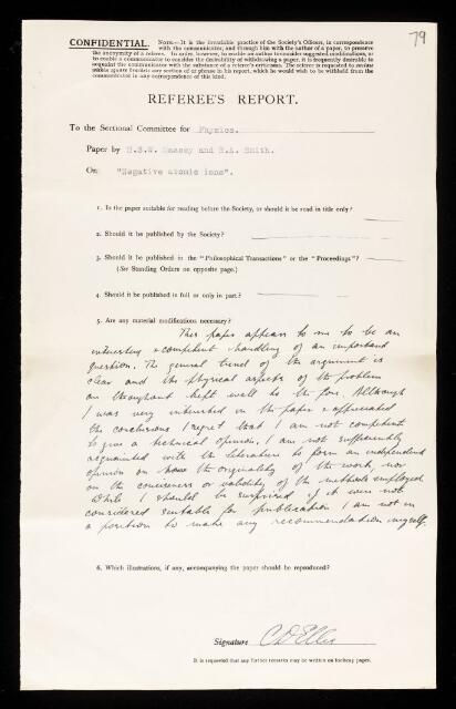 Charles Drummond Ellis, Referee's report by Charles Drummond Ellis, on a paper 'Negative atomic ions' by H S W Massey and Robert Allan Smith, March 1936, RR/58/79, The Royal Society Archives, London, https://makingscience.royalsociety.org/items/rr_58_79/referees-report-by-charles-drummond-ellis-on-a-paper-negative-atomic-ions-by-h-s-w-massey-and-robert-allan-smith, accessed on 16 January 2026