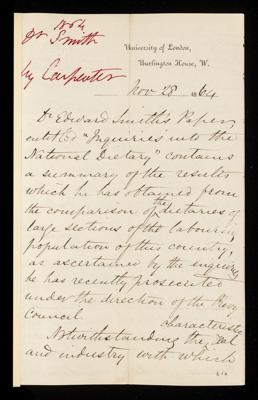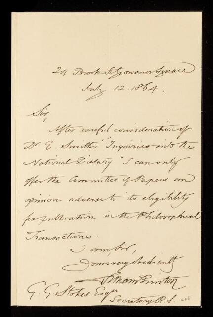William Brinton, Referee's report by William Brinton, on a paper 'Inquiries into the national dietary' by Edward Smith, 12 July 1864, RR/5/247, The Royal Society Archives, London, https://makingscience.royalsociety.org/items/rr_5_247/referees-report-by-william-brinton-on-a-paper-inquiries-into-the-national-dietary-by-edward-smith, accessed on 06 December 2025