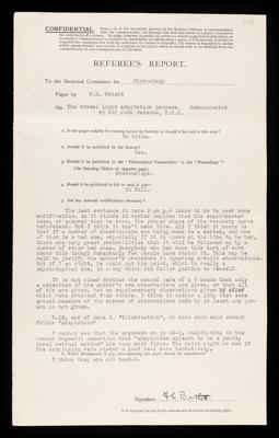 Referee's report by Frederic Charles Bartlett, on a paper 'The foveal light adaptation process' by W D Wright