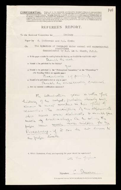 Cresswell Shearer, Referee's report by Cresswell Shearer, on a paper 'The hydatids of Morgagni under normal and experimental conditions' by Solly Zuckerman and Peter Leslie Krohn, March 1937, RR/63/140, The Royal Society Archives, London, https://makingscience.royalsociety.org/items/rr_63_140/referees-report-by-cresswell-shearer-on-a-paper-the-hydatids-of-morgagni-under-normal-and-experimental-conditions-by-solly-zuckerman-and-peter-leslie-krohn, accessed on 22 January 2026