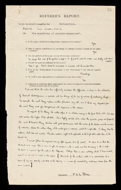 https://makingscience.royalsociety.org/items/rr_63_22/second-referees-report-by-paul-adrien-maurice-dirac-on-a-paper-the-equations-of-electromagnetism-i-fundamental-identifications-ii-field-theory-by-edward-arthur-milne