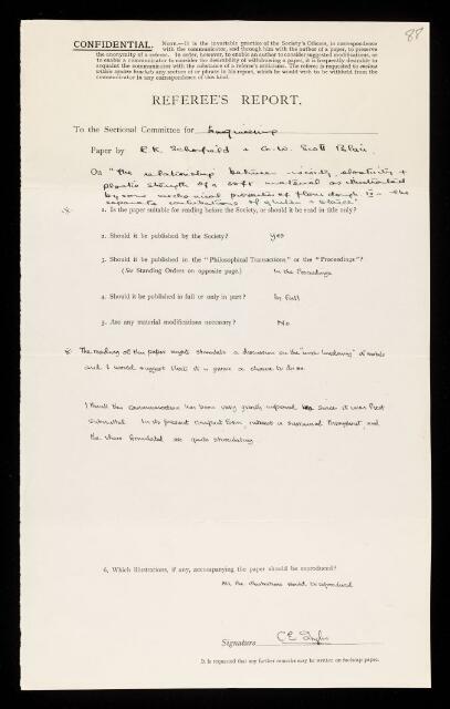 Charles Edward Inglis, Second referee's report by Charles Edward Inglis, on a paper 'The relationship between viscosity, elasticity and plastic strength of a soft material as illustrated by some mechanical properties of flour dough IV— The separate contributions of gluten and starch' by Robert Kenworthy Schofield and George William Scott Blair, March 1937, RR/63/88, The Royal Society Archives, London, https://makingscience.royalsociety.org/items/rr_63_88/second-referees-report-by-charles-edward-inglis-on-a-paper-the-relationship-between-viscosity-elasticity-and-plastic-strength-of-a-soft-material-as-illustrated-by-some-mechanical-properties-of-flour-dough-iv-the-separate-contributions-of-gluten-and-starch-by-robert-kenworthy-schofield-and-george-william-scott-blair, accessed on 08 December 2025
