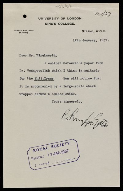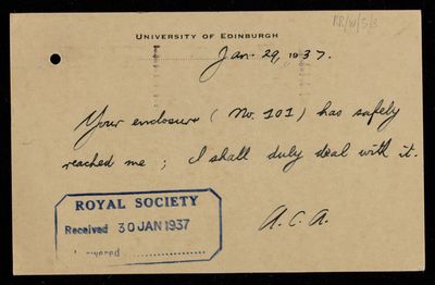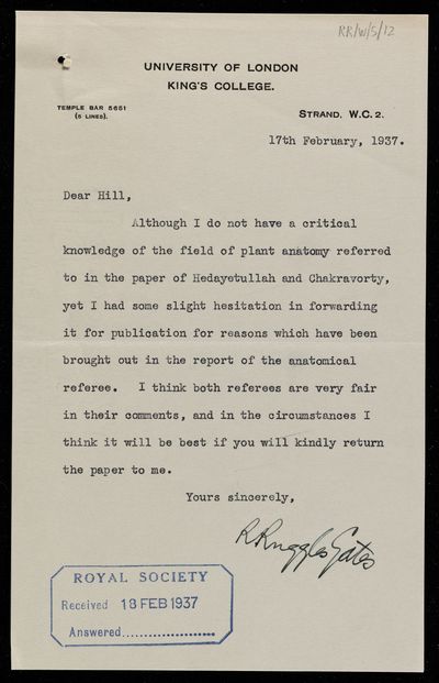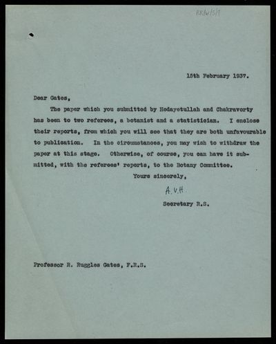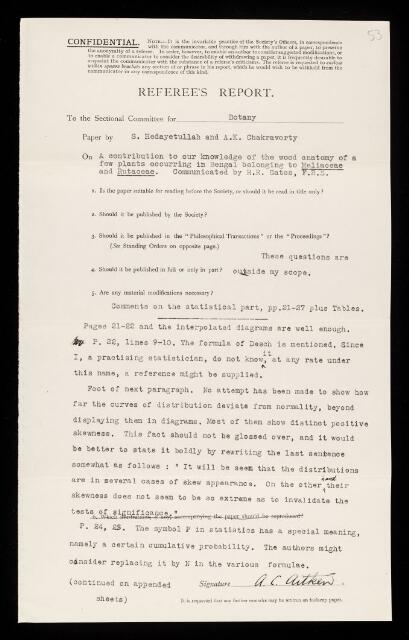 Alexander Craig Aitken, Referee's report by Alexander Craig Aitken, on a paper 'A contribution to our knowledge of the wood anatomy of a few plants occurring in Bengal belonging to Meliaceae and Rutaceae' by S[Syed] Hedayetullah and A K Chakravorty, February 1937, RR/64/53, The Royal Society Archives, London, https://makingscience.royalsociety.org/items/rr_64_53/referees-report-by-alexander-craig-aitken-on-a-paper-a-contribution-to-our-knowledge-of-the-wood-anatomy-of-a-few-plants-occurring-in-bengal-belonging-to-meliaceae-and-rutaceae-by-ssyed-hedayetullah-and-a-k-chakravorty, accessed on 21 April 2026