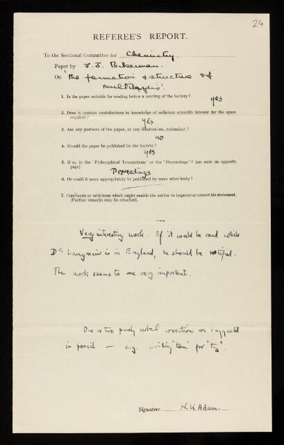 Neil Kensington Adam, Referee's report by Neil Kensington Adam, on a paper 'On the formation and structure of multilayers' by J J Bikerman, 1938, RR/65/24, The Royal Society Archives, London, https://makingscience.royalsociety.org/items/rr_65_24/referees-report-by-neil-kensington-adam-on-a-paper-on-the-formation-and-structure-of-multilayers-by-j-j-bikerman, accessed on 10 November 2025