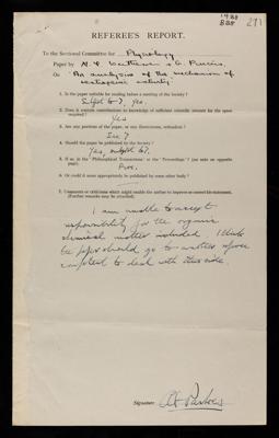 Referees' reports on scientific papers submitted to the Royal Society for publication