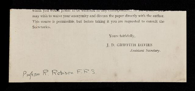 Robert Robinson, Referee's report by Robert Robinson, on a paper 'Interconversions of carbohydrates in the higher plants. The breakdown and synthesis of starch by an enzyme system from pea seeds' by Charles Samuel Hanes, 21 November 1939, RR/67/224, The Royal Society Archives, London, https://makingscience.royalsociety.org/items/rr_67_224/referees-report-by-robert-robinson-on-a-paper-interconversions-of-carbohydrates-in-the-higher-plants-the-breakdown-and-synthesis-of-starch-by-an-enzyme-system-from-pea-seeds-by-charles-samuel-hanes, accessed on 13 November 2025