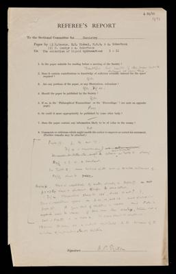 Referees' reports on scientific papers submitted to the Royal Society for publication