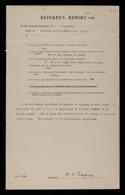 Referees' reports on scientific papers submitted to the Royal Society for publication
