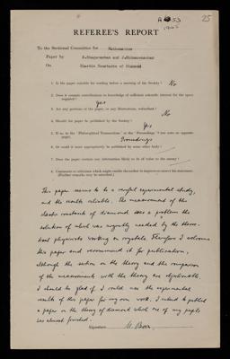Referee's report by Max Born, on a paper 'Elastic constants of diamond' by S Bhagavantam and J Bhimasenachar