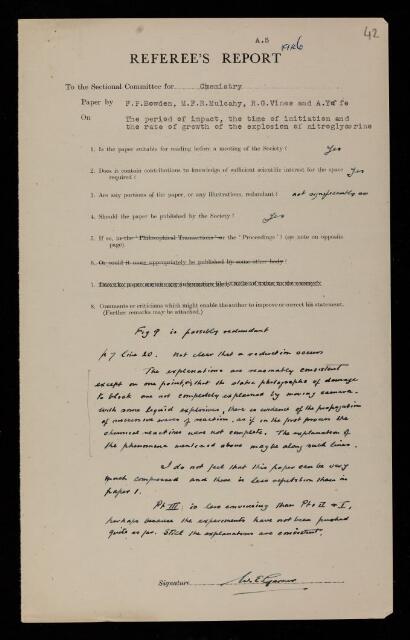 https://makingscience.royalsociety.org/items/rr_69_42/referees-report-by-william-edward-garner-on-a-paper-the-period-of-impact-the-time-of-initiation-and-the-rate-of-growth-of-the-explosion-of-nitroglycerine-by-frank-philip-bowden-m-f-r-mulcahy-r-g-vines-and-a-yoffe