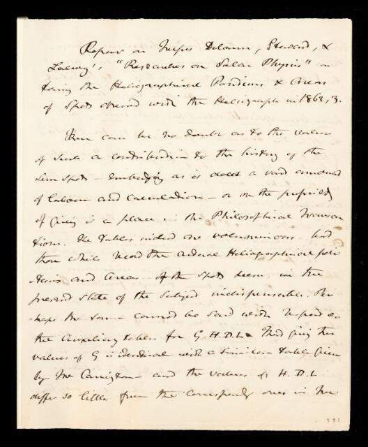 https://makingscience.royalsociety.org/items/rr_6_101/referees-report-by-john-frederick-william-herschel-on-a-paper-researches-on-solar-physics-heliographical-positions-and-areas-of-sun-spots-observed-with-the-kew-photoheliograph-during-the-years-1862-and-1863-by-warren-de-la-rue-balfour-stewart-and-benjamin-loewy