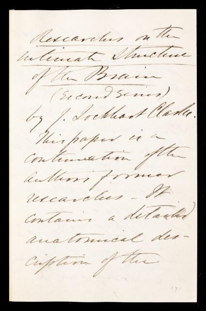 Referee's report by William Sharpey, on a paper 'Researches on the intimate structure of the brain.—Second series' by Jacob Augustus Lockhart Clarke