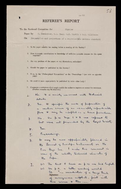 Philip Ivor Dee, Referee's report by Philip Ivor Dee, on a paper 'Preparation and properties of a reproducible neutron standard' by E Bretscher, G B Cook, G R Martin and D H Wilkinson, 1948, RR/71/53, The Royal Society Archives, London, https://makingscience.royalsociety.org/items/rr_71_53/referees-report-by-philip-ivor-dee-on-a-paper-preparation-and-properties-of-a-reproducible-neutron-standard-by-e-bretscher-g-b-cook-g-r-martin-and-d-h-wilkinson, accessed on 18 April 2026