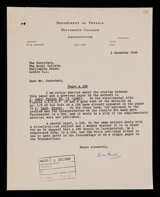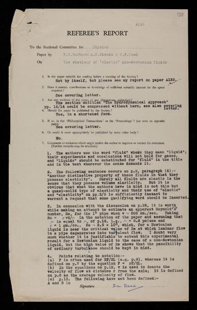Referee's report by R M Davies, on a paper 'The rheology of 'elastic' non-Newtonian fluids' by F H Garner, A H Nissan and G F Wood, 1949, RR/72/128, The Royal Society Archives, London, https://makingscience.royalsociety.org/items/rr_72_128/referees-report-by-r-m-davies-on-a-paper-the-rheology-of-elastic-non-newtonian-fluids-by-f-h-garner-a-h-nissan-and-g-f-wood, accessed on 17 December 2025