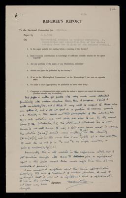 Referees' reports on scientific papers submitted to the Royal Society for publication
