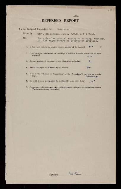Meredith Gwynne Evans, Referee's report by Meredith Gwynne Evans, on a paper 'The molecular orbital theory of chemical valency. IV. The significance of equivalent orbitals' by John Edward Lennard-Jones and John Anthony Pople, 1949, RR/72/179, The Royal Society Archives, London, https://makingscience.royalsociety.org/items/rr_72_179/referees-report-by-meredith-gwynne-evans-on-a-paper-the-molecular-orbital-theory-of-chemical-valency-iv-the-significance-of-equivalent-orbitals-by-john-edward-lennard-jones-and-john-anthony-pople, accessed on 14 February 2026
