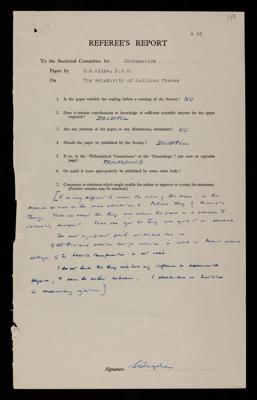 Referees' reports on scientific papers submitted to the Royal Society for publication