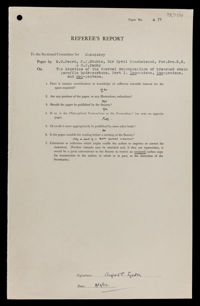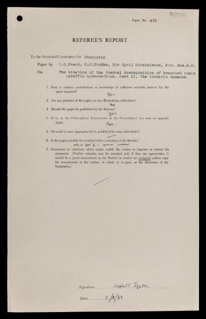 https://makingscience.royalsociety.org/items/rr_77_85/referees-report-by-alfred-charles-glyn-egerton-on-a-paper-the-kinetics-of-the-thermal-decomposition-of-branched-chain-paraffin-hydrocarbons-part-ii-the-isomeric-hexanes-by-m-g-peard-f-j-stubbs-sir-cyril-hinshelwood