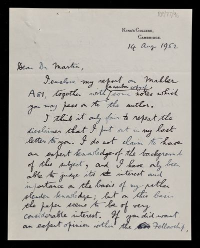 Creator: Abram Samoilovitch Besicovitch Reference number: RR/77/95 -