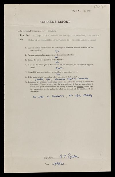 https://makingscience.royalsociety.org/items/rr_79_305/referees-report-by-alfred-charles-glyn-egerton-on-a-paper-modes-of-decomposition-of-n-pentane-i-pressure-changes-and-mass-spectrometric-analysis-by-c-j-danby-b-c-spall-f-j-stubbs-and-cyril-norman-hinshelwood