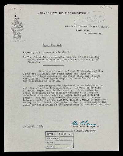 Creator: Michael Polanyi Reference number: RR/79/70