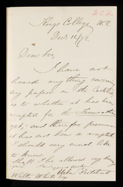 Letter from Urban Pritchard, on his paper 'On the structure and function of the rods of the cochlea in man and other mammals' to the Secretary of the Royal Society, 12 December 1872, RR/7/202, The Royal Society Archives, London, https://makingscience.royalsociety.org/items/rr_7_202/letter-from-urban-pritchard-on-his-paper-on-the-structure-and-function-of-the-rods-of-the-cochlea-in-man-and-other-mammals-to-the-secretary-of-the-royal-society, accessed on 09 February 2026