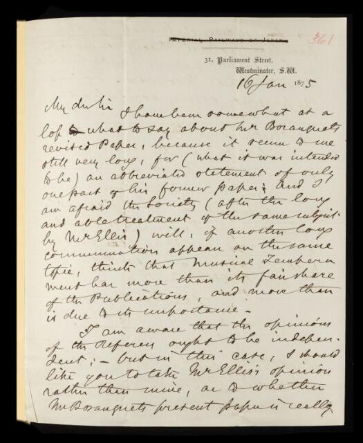 William Pole, Referee's report by William Pole, on a paper 'The theory of the division of the octave, and the practic treatment of the musical systems thus obtained. Revised version of a paper entitled 'On just intonation in music with a description of a new instrument for the easy control systems of tuning other than the equal temperament of 1 divisions in the octave' by Robert Holford Macdowall Bosanquet, 16 January 1875, RR/7/361, The Royal Society Archives, London, https://makingscience.royalsociety.org/items/rr_7_361/referees-report-by-william-pole-on-a-paper-the-theory-of-the-division-of-the-octave-and-the-practic-treatment-of-the-musical-systems-thus-obtained-revised-version-of-a-paper-entitled-on-just-intonation-in-music-with-a-description-of-a-new-instrument-for-the-easy-control-systems-of-tuning-other-than-the-equal-temperament-of-1-divisions-in-the-octave-by-robert-holford-macdowall-bosanquet, accessed on 16 March 2026