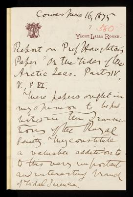 George Biddell Airy, Referee's report by George Biddell Airy, on two papers 'On the tides of the Arctic Seas. - Part IV. On the tides of Northumberland sound, at the Northern outlet Wellington channel' and 'On the tides of the arctic seas. - Part V. On the tides of refuge cove, wellington channel' by Samuel Haughton, 16 June 1875, RR/7/379, The Royal Society Archives, London, https://makingscience.royalsociety.org/items/rr_7_379/referees-report-by-george-biddell-airy-on-two-papers-on-the-tides-of-the-arctic-seas-part-iv-on-the-tides-of-northumberland-sound-at-the-northern-outlet-wellington-channel-and-on-the-tides-of-the-arctic-seas-part-v-on-the-tides-of-refuge-cove-wellington-channel-by-samuel-haughton, accessed on 07 December 2025