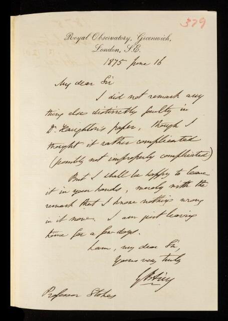 Creator: George Gabriel Stokes Reference number: RR/7/378 -