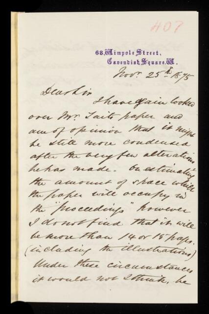 John Wood, Referee's report by John Wood, on a paper 'Preliminary note on the anatomy of the umbilical cord' by Lawson Tait, 25 November 1875, RR/7/407, The Royal Society Archives, London, https://makingscience.royalsociety.org/items/rr_7_407/referees-report-by-john-wood-on-a-paper-preliminary-note-on-the-anatomy-of-the-umbilical-cord-by-lawson-tait, accessed on 16 November 2025