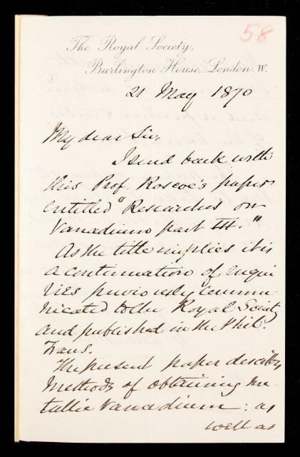 William Allen Miller, Referee's report by William Allen Miller, on a paper 'Researches on vanadium - Part III' by Henry Enfield Roscoe, 21 May 1870, RR/7/58, The Royal Society Archives, London, https://makingscience.royalsociety.org/items/rr_7_58/referees-report-by-william-allen-miller-on-a-paper-researches-on-vanadium-part-iii-by-henry-enfield-roscoe, accessed on 12 March 2026
